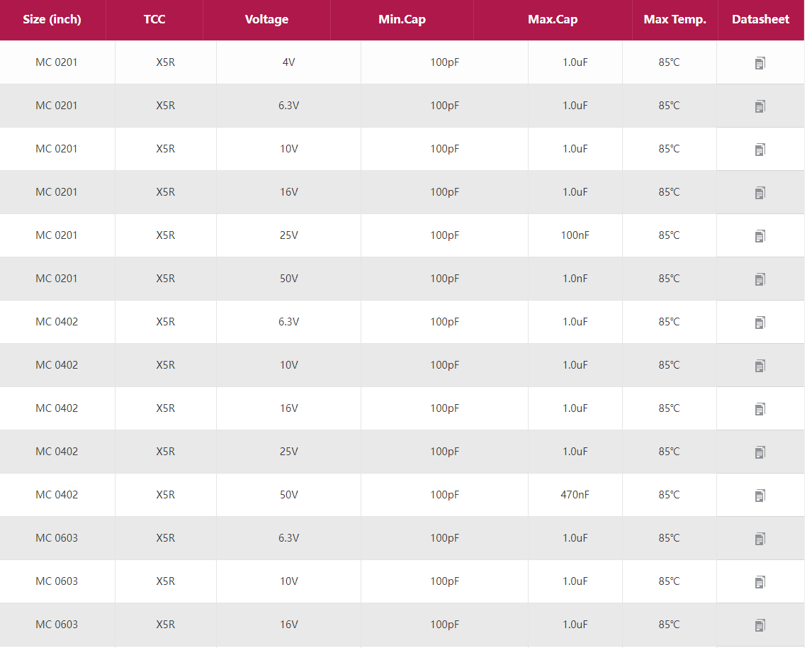 信維電容-信維貼片電容 產品型號:0201 0402 0603 0805