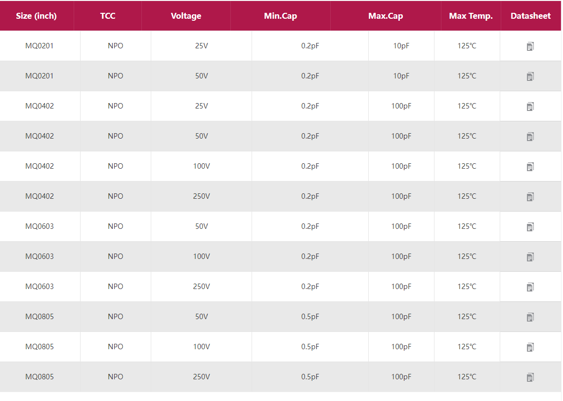 信維高頻電容 產(chǎn)品型號:0201 0402 0603 0805